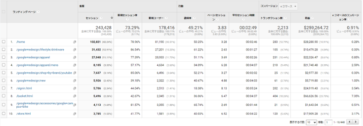 デフォルトの場合、データの行数は10行となっています。すべてのデータをエクスポートしたい場合などは、ユニバーサル アナリティクスの画面右下の「表示する行数」の変更を行いましょう。