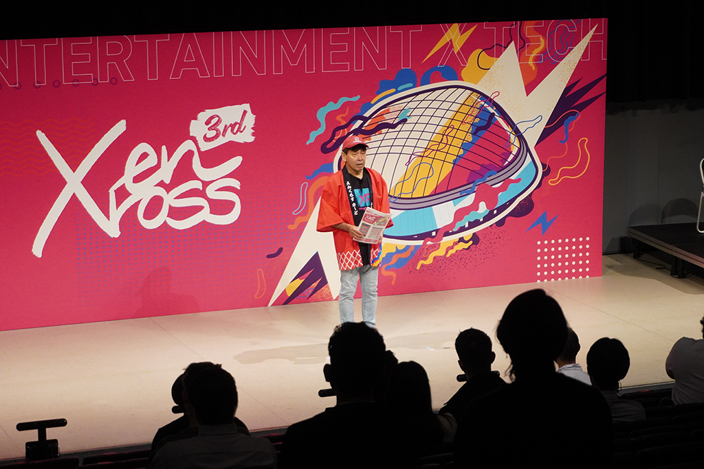 まずは、株式会社東京ドーム 代表取締役会長 CEOの北原義一氏から、開会のあいさつがありました。ポップないでたちで「enXross 3rd」への熱い思いを語る姿は、とても印象的でした。