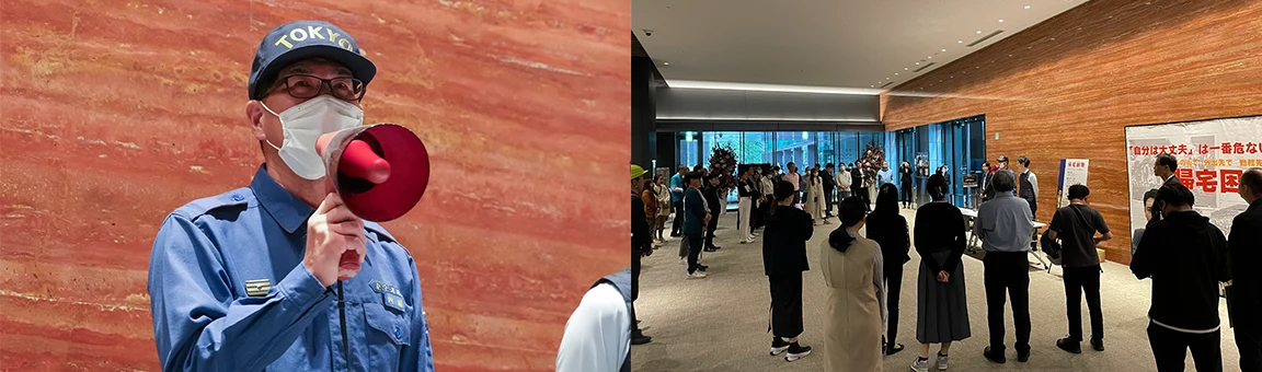 広報担当 山野井10月24日、住友不動産新宿グランドタワーにて、地震発生を想定した避難訓練と「当社オフィスの会議室にあるモバイルバッテリーから発火した」という想定による消防訓練を実施しました。