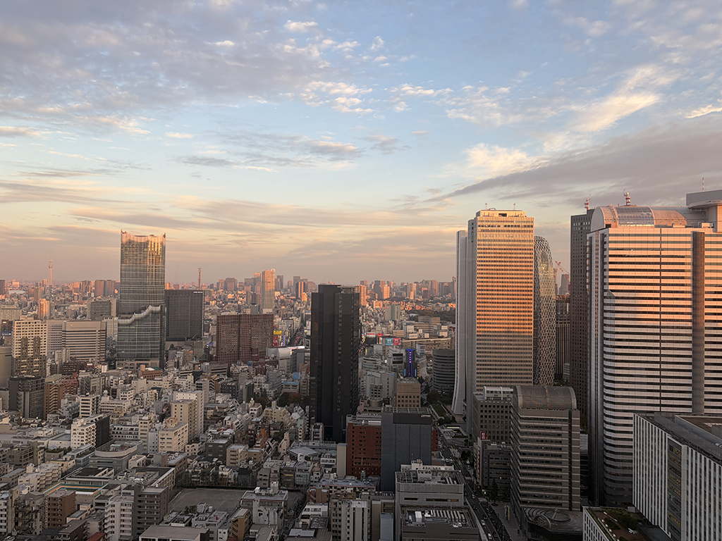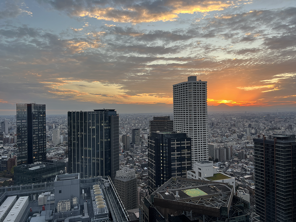 ビル群が夕日に染まる様子や、富士山のシルエットがとても素敵でした。