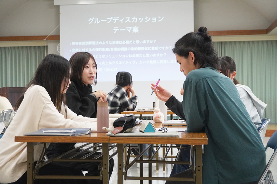 後半は、「改正障害者差別解消法とWebアクセシビリティ」というテーマで展開。改正障害者差別解消法とはどのような法律か? Webアクセシビリティにおいて配慮すべき点は? などについて解説しました。その後、「障害者差別解消法のような法律は必要か」「企業に対する合理的配慮/合理的調整の法的義務化に賛成か」などの題目で、グループディスカッションを行いました。