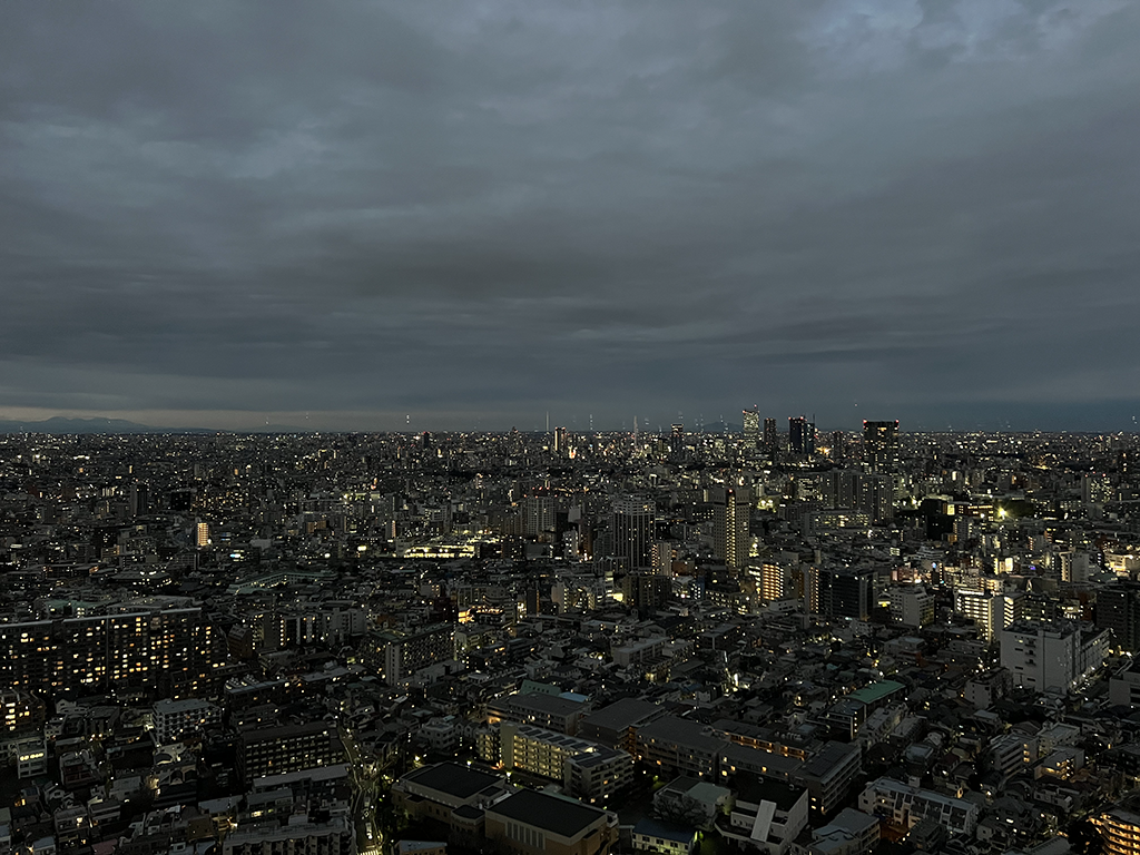 2026年最初の投稿となる今日、オフィスから見える空はあいにくの曇り模様で、夕日を見ることはできませんでした。しかし、日が落ちると街並みがきらきらと輝き出し、冬ならではの澄んだ夜景を楽しむことができました。