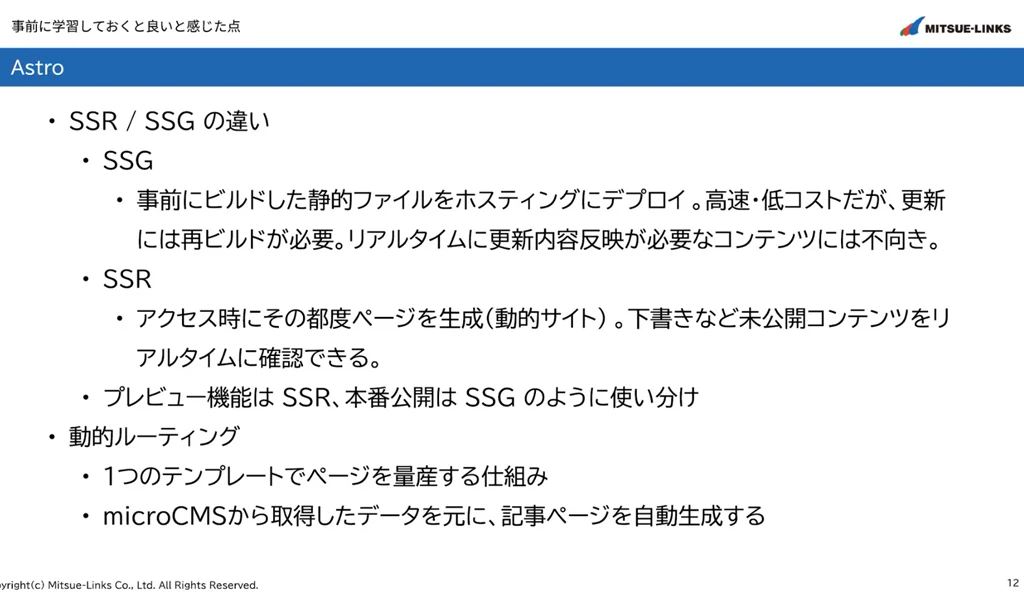以下に、発表の中で取り上げられた「事前に押さえておくとよいポイント」の一部を紹介します。