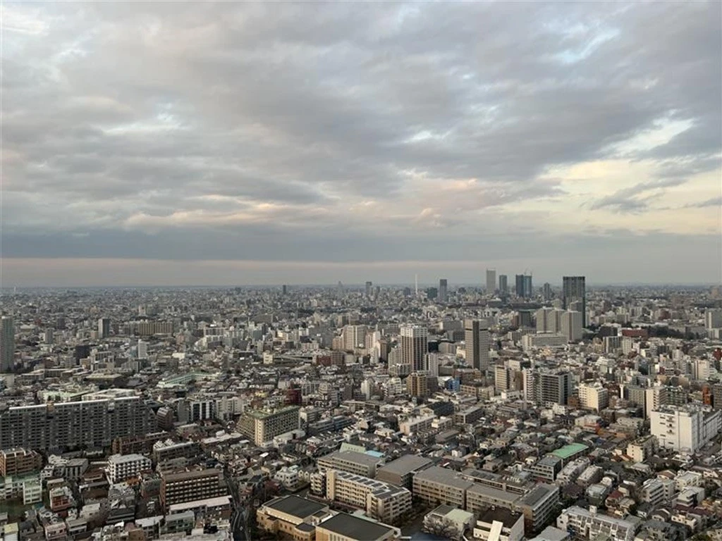 今日のミツエーリンクスから見える空は、あいにくの曇り空でしたが、暗くなると街の明かりがキラキラと輝いていて、とても綺麗でした。