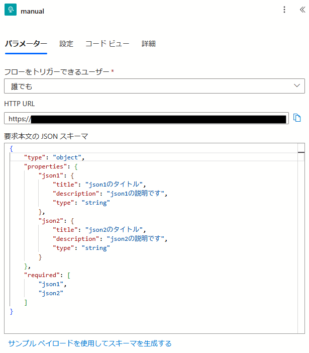「HTTP 要求の受信時」トリガー