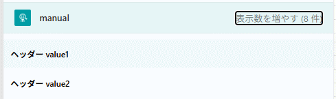 {value1}や{value2}を具体的な値で置き換えたURLをリクエストすると、クラウドフローの後続の処理で「ヘッダー value1」や「ヘッダー value2」として値を取り出せます。